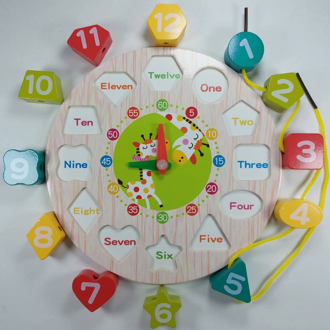 1 × Digital Geometric Clock with Threading Laces (teach time & fine motor skills)
