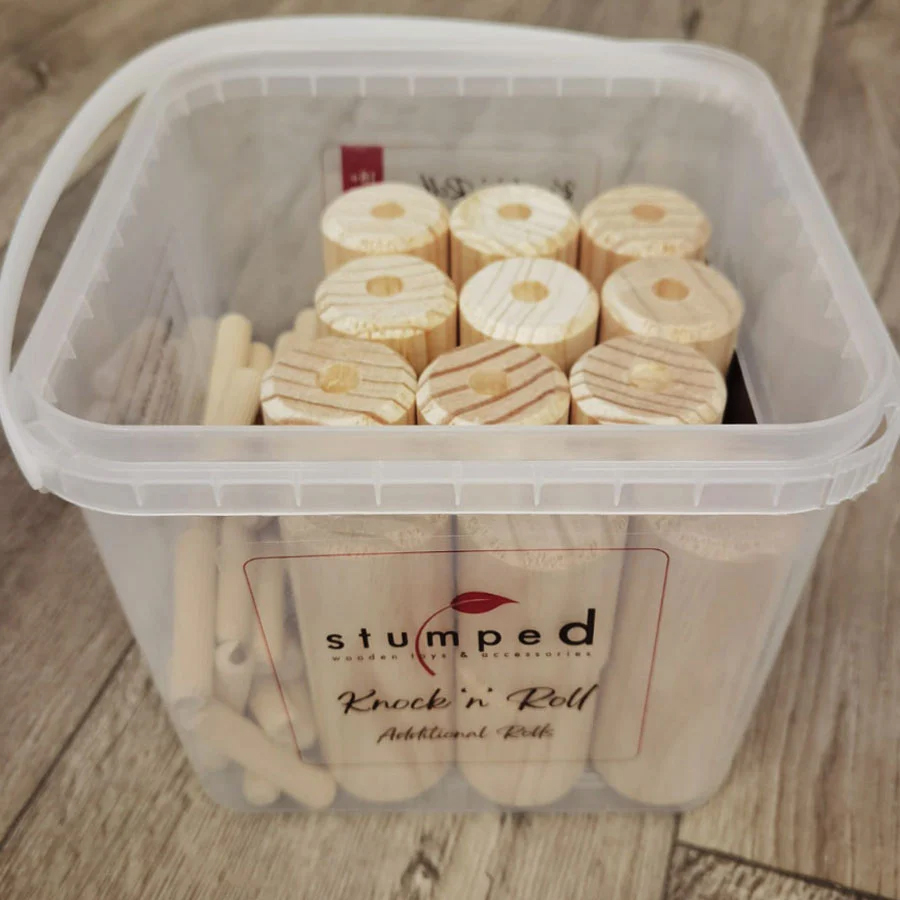 6x Long Wooden Rolls, 12x Short Wooden Rolls, 40x Wooden Dowels.