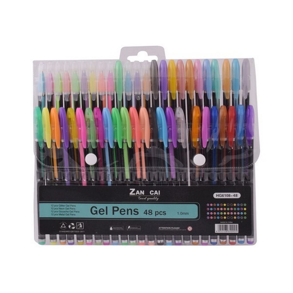 48 vibrant gel pens in assorted finishes (metallic, glitter, neon)